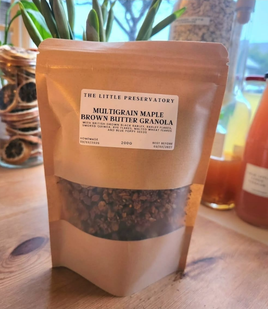 The Little Preservatory was born at a difficult time in my life, a silver lining out of a cloudy time. I’d been facing a series of health challenges, including needing to be tube fed (first via a regular feeding tube, and then via a tube into my heart), deep vein thrombosis, thyroid cancer and more. At the beginning of 2024 I suddenly stopped sleeping, and was advised to find an activity to do in the cold, dark, small hours that would keep me from ruminating on my insomnia, but wouldn’t wake me up so much I couldn’t go back to bed. That’s when I discovered preserve making, purely by chance because we had more onions than we knew what to do with. That first batch of caremalised onion chutney became The Little Preservatory, a project that has quite literally seen me through the darkest period of my life.